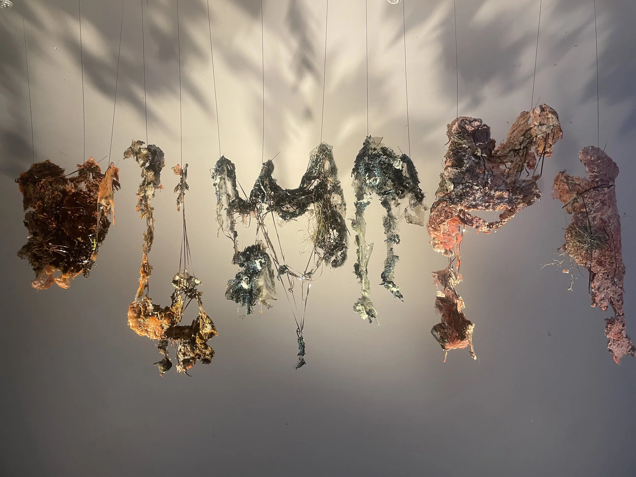 Tai Kelly is an installation artist whose practice extends across drawing and sound. She investigates interspecies communication through material experimentation, using mediums that are non-traditional and at times living. Informed by her background in electronic music production and circuit building, she constructs responsive systems that reimagine how sound operates as a mode of exchange between species. Her work aims to entangle human and non-human worlds, revealing speculative languages that emerge through ritual to form kinship with unfamiliar forms of intelligence. Kelly’s installations function as active ecosystems, shifting through cycles of breathing, decay, rust, and regeneration. By allowing her works to transform in situ, she challenges conventional modes of presentation through temporal processes. Through these evolving systems of communication, Kelly imagines possibilities for future modes of coexistence that may gently expand how we understand our place within broader ecological systems.